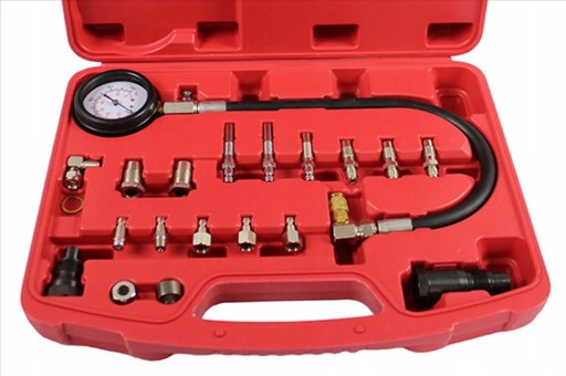 Profesjonalny zestaw pomiaru ciśnienia sprężania w cylindrach silników wysokoprężnych (diesel). Pomiaru można dokonać zarówno przez świece żarowe jak i przez wtryskiwacz.