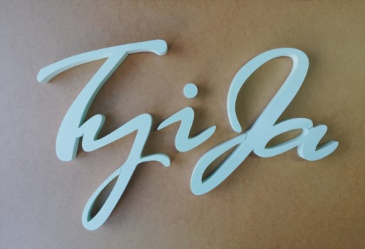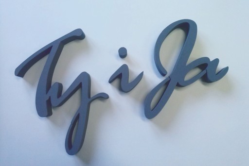 Przedmiotem sprzedaży jest napis dekoracyjny 3D Ty i Ja o wymiarze 65x40cm. Napis wykonany jest z lekkiego styroduru o grubości około 3cm pomalowany farbami akrylowymi.