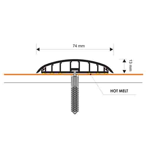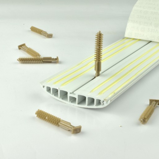 Standardowo maskownica Volt@ podklejona jest klejem wiecznie żywym typu hot melt. Klej wiecznie żywy jest materiałem lepko-sprężystym o doskonałych właściwościach fizyko-chemicznych zapewniających wysoką elastyczność spoiny i rewelacyjną adhezję do powierzchni. Dzięki temu klej zachowuje swoje plastyczne właściwości przez cały okres użytkowania, a maskownica ma zapewnioną stabilność zamocowania. Ponadto klej wiecznie żywy eliminuje efekt trzasku po nadepnięciu na maskownicę oraz chroni połączenia podłóg, czy ścian przed kontaktem z wilgocią, czy brudem.