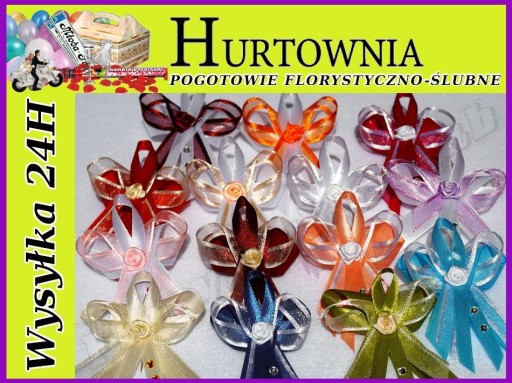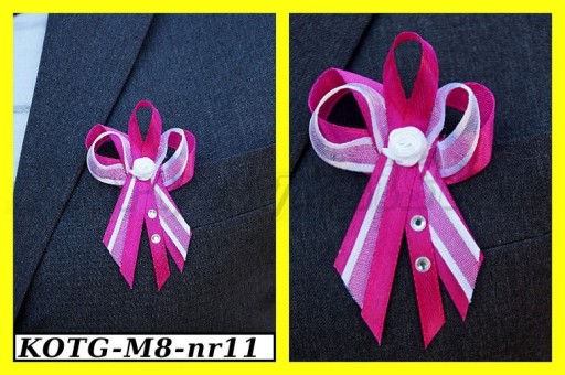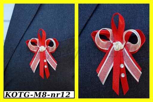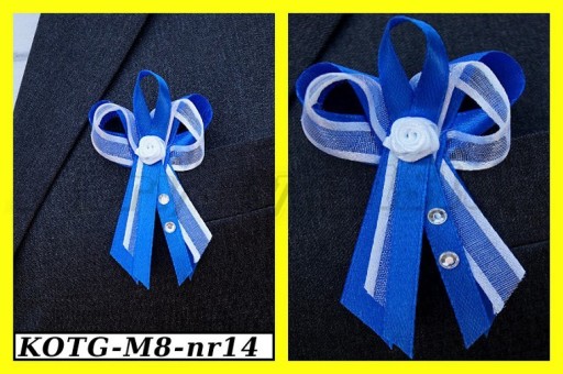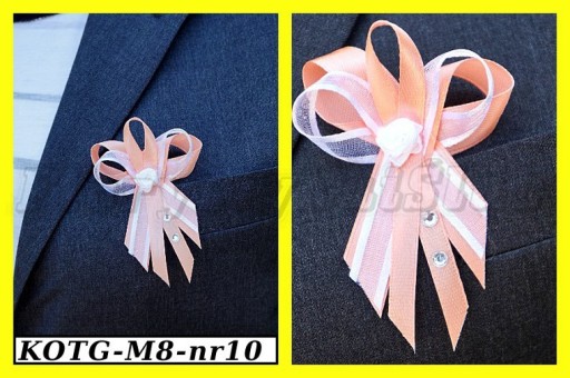 Wykonane są ze wstążek atłasowych i szyfonowych z lamówką. Każdy kotylion posiada szpilkę.