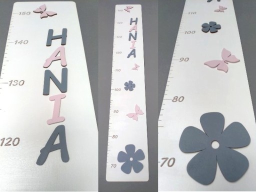 Dostępne kolory miarki: pastelowy róż, szary, biały