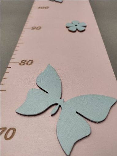 Miarka wykonana jest ze sklejki o grubości 3 mm, pomalowana farbą akrylową a następnie lakierem.