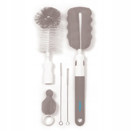 Uniwersalny zestaw szczotek umożliwia dokładne czyszczenie butelek, smoczków, kubków, słomek, rurek i innych artykułów do karmienia i pielęgnacji dzieci. Różne końcówki szczotek umożliwiają dopasowanie do czyszczonych przedmiotów i dotarcie do trudno dostępnych miejsc. Otwory w rączkach szczotek służą do ich zawieszenia w celu osuszenia przed kolejnym użyciem.