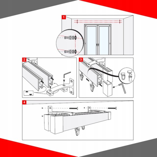 4. Kompletny karnisz zamontuj za pomocą wkrętów montażowych dołączonych do karnisza