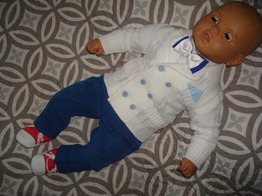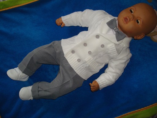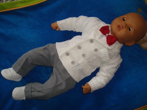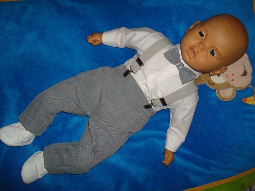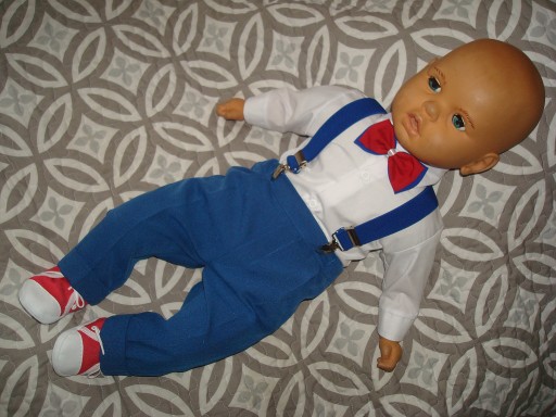 - koszulę typu body+spodnie+muszka+szelki+sweterek w stylu marynarki .