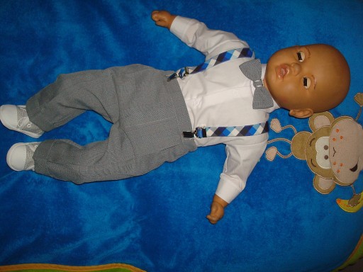 - koszulę typu body+spodnie+muszka+szelki+sweterek .