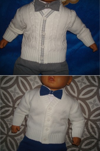 - MUSZKA ZAWIĄZYWANA NA TASIEMCE DO WYBOR- ŚLICZNY SWETEREK ZAPINANY NA GUZICZKI