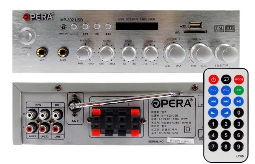 NAJNOWSZY WZMACNIACZ AMPLITUNER STEREO 4 - KANAŁOWY Z BLUETOOTH, WYŚWIETLACZEM LCD, PEŁNĄ REGULACJĄ BARWY DŹWIĘKU ORAZ MIKROFONÓW W TYM ECHA, TUNEREM RADIOWYM, WEJŚCIEM USB I SD DO ODTWARZANIA MUZYKI ORAZ Z WEJŚCIEM NA PODŁĄCZENIE NP. KOMPUTERA, WIEŻY, TELEFONU, TELEWIZORA ITP. W SUPER CENIE !!!
