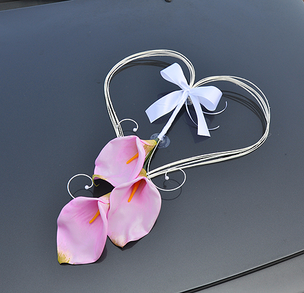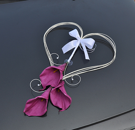 Pragniemy Państwu zaproponować przepiękną i pełną elegancji dekorację na samochód ślubny, dzięki której auto Młodej Pary