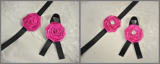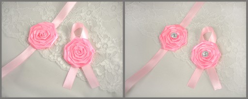 Każda różyczka jest ręcznie wykonywana, może być ozdobiona kryształkiem lub może być bez tej dekoracji. Różyczki mają średnicę ok 4,5 - 5 cm , a wstążeczki do przywiązania na ręku całkowitą długość ok 40 cm - umożliwia to łatwe zawiązanie tasiemki nawet na grubszej ręce. Kotylion do przypięcia ma ok. 11 cm długości.