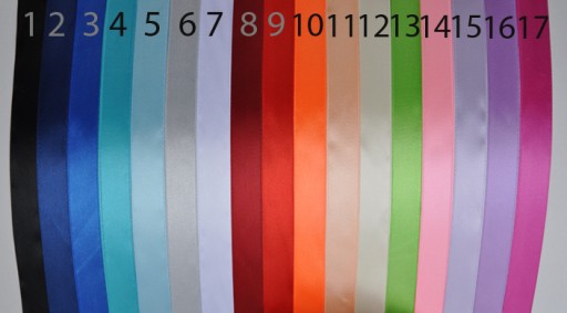 Na poniższym zdjęciu prezentujemy dostępne kolory wstążek, z których możemy wykonać róże na kotylionach dla Państwa.