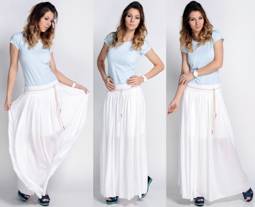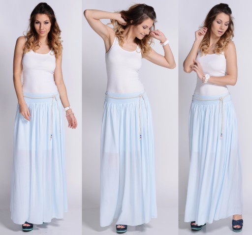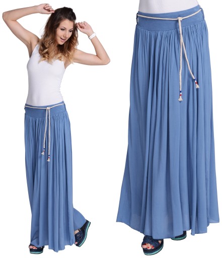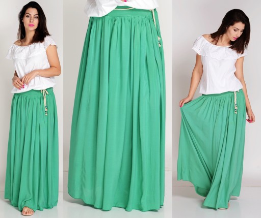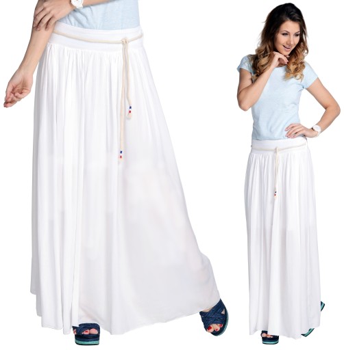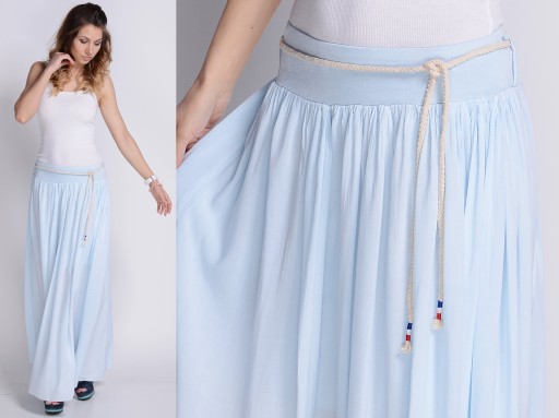 OPIS PRODUKTU Włoska Spódnica MAXI, UNIKATOWY projekt ! Model z wysokogatunkowej, zwiewnej tkaniny - bardzo lekkiej, przyjemnej i miłej. Pas bawełniany z wygodną gumką - idealnie dopasowuje się do sylwetki. GRATIS pasek w stylu BOHO, pleciony sznureczek - wykończony w marynarskim stylu. Model fantastyczny pasuje do każdej stylizacji idealny na letnie dni. Model posiada delikatną podszewkę do kolana.