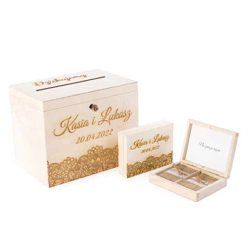 Komplet - Skrzynia drewniana na koperty i obrączki