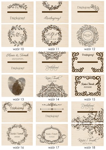 - dane do nadruku na skrzynkę i pudełko pod obrączki