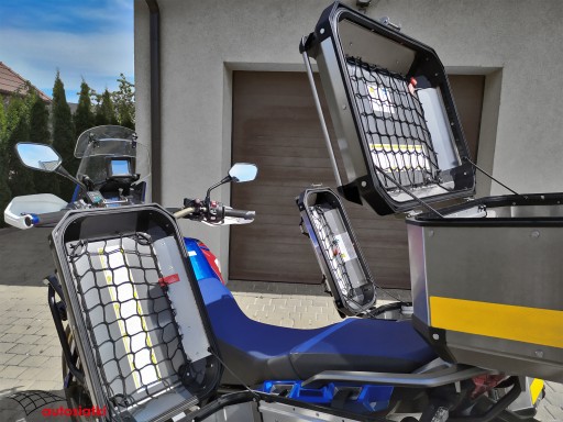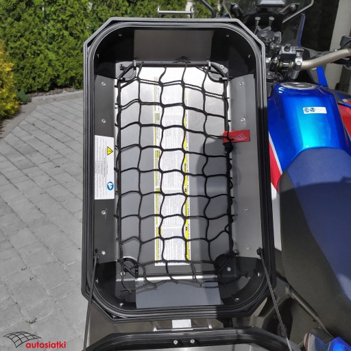 Wytrzymała siatka w gumowym oplocie. Montowana do fabrycznych uchwytów w pokrywie górnej kufra. Pomaga wykorzystać dodatkowe miejsce na bagaż, stabilizuje mniejsze akcesoria, zwiększa organizację przestrzeni w kufrze.