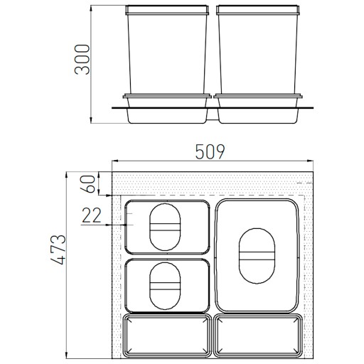 - Wymiary pojemnika dużego: szerokość-220 MM, głębokość-300 MM, wysokość-300 MM
