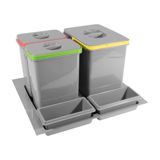 Kosz Segregator na śmieci potrójny przeznaczony jest do szuflad z frontem 60 cm. W skład produktu wchodzi wkład, który można dociąć, jeden pojemnik o pojemności 15 L, dwa pojemniki o pojemności 7 L oraz dwie brytfanki. Jest to świetne rozwiązanie pozwalające w prosty i przyjemny sposób segregować odpady. Wysokiej jakości produkt polskiego producenta marki GTV.