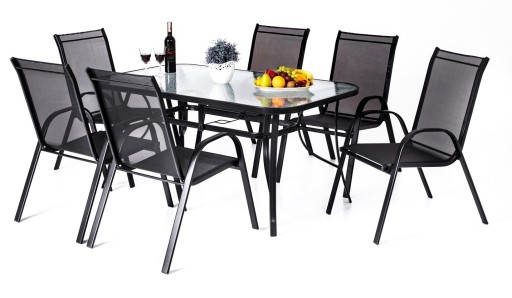 КОМПЛЕКТ САДОВОЙ МЕБЕЛИ СТЕКЛЯННЫЙ СТОЛ 6 СТУЛЬЕВ
