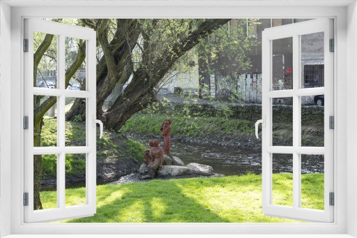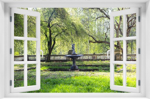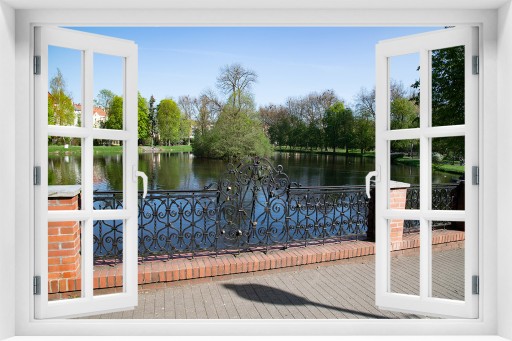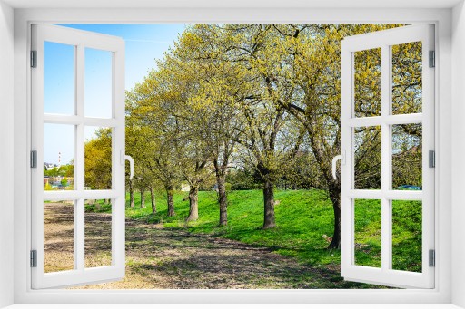 Interesujące obrazy w formie okna w ścianie z optycznym złudzeniem efektu 3d.