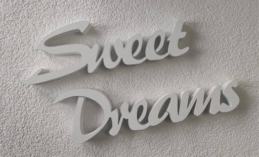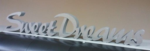 Napis wykonany jest z lekkiego styroduru o grubości około 3cm pomalowany farbami akrylowymi. Doskonale nadaje się jako oryginalna i efektowna ozdoba każdego wnętrza.