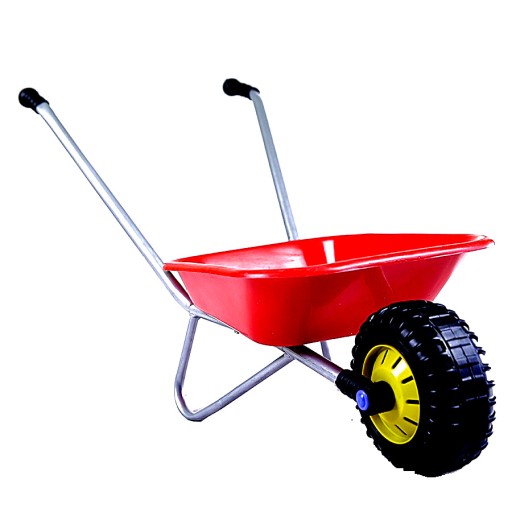 W zestawie znajdą Państwo dużą taczkę wykonaną na metalowym stelażu z plastikową skrzynką. Szerokie koło wykonane z plastiku jak również plastikowe ,,rączki” ułatwiają dziecku operowanie zabawką. Do skrzyni można ładować różne materiały – od piasku począwszy na zabawkach skończywszy. Takie rozwiązanie pozwala na używanie taczki zarówno w warunkach domowych jak i w piaskownicy, ogrodzie czy też na plaży.