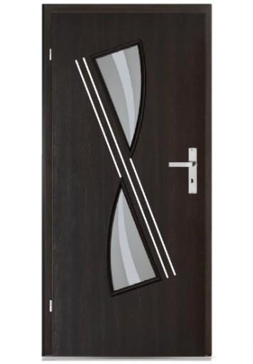 Przedmiotem aukcji są nowoczesne drzwi o drewnianej konstrukcji ramowej.
