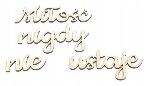 Miłość: 160x57mm, nigdy: 139x78mm, nie: 73x38mm, ustaje: 134x74mm