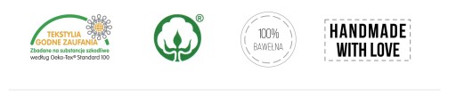 - Certyfikowana bawełna, Oeko Tex Standard, przyjazna dla skóry