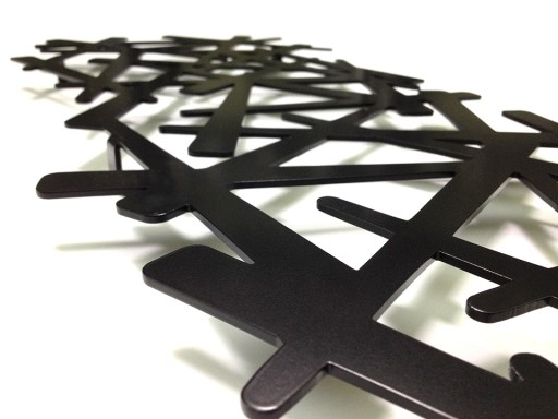 Dekoracja ta pełniąca funkcję wieszaka przedstawia wiele połączonych ze sobą kształtów. Ich połączenia i wypustki powodują, że mamy dowolność zawieszania na nim przedmiotów.