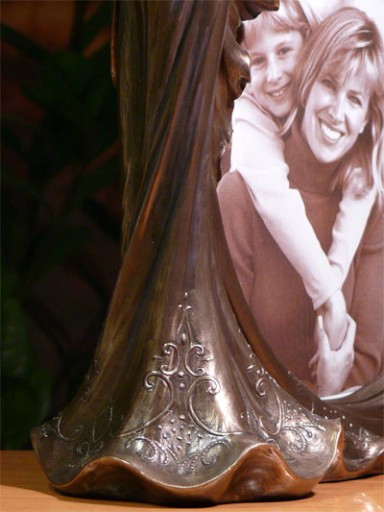 Rzeźba jest pokryta brązem i podklejona delikatnym materiałem nie rysującym mebli.