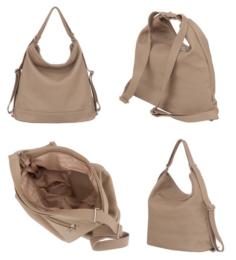 Polska modna skórzana torebka torba XL miękka SKÓRA NATURALNA A4 worek plecak 2w1