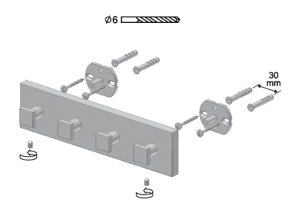 - Wieszak łazienkowy na ręcznik lub szlafrok, montowany do ściany za pomocą kołków rozporowych (dołączonych do opakowania).