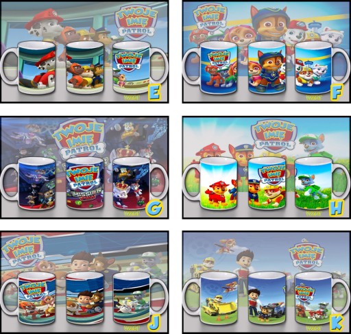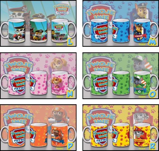 Kubek wzór: [tutaj wstaw literkę wzoru] + napis: [tutaj napisz jaki napis mamy umieścić na kubku]
