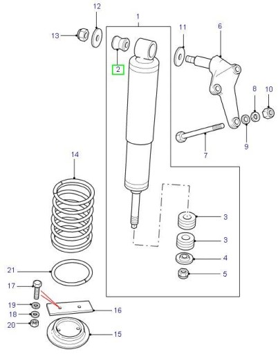 Poliuretanowe tulejki górne amortyzatora tylnego (zestaw na 2 amortyzatory) do Land Rover i Range Rover.