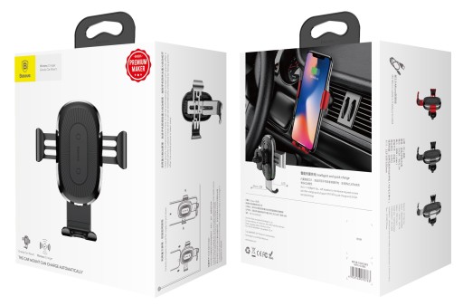 BASEUS UCHWYT SAMOCHODOWY NA TELEFON SZYBKA ŁADOWARKA INDUKCYJNA Qi 10W