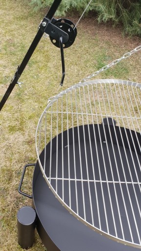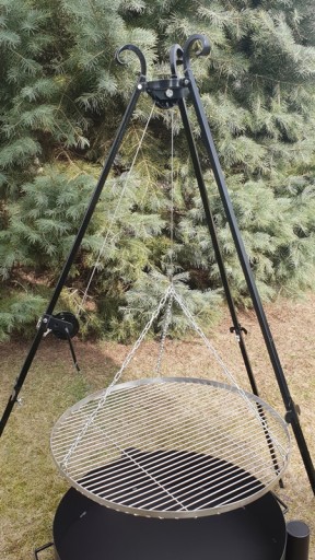 Prezentujemy kompletny zestaw do grillowania. Grill bardzo ładnie prezentuję się na działce czy w ogrodzie. Dzięki okrągłemu rusztowi grillowanie na nim jest bardzo proste oraz wygodne. Okrągły ruszt zapewnia dostęp do potraw z każdej strony, a regulacja wysokości rusztu nad paleniskiem zapewnia pełna kontrolę nad procesem grillowania. Kolejną zaletą naszego zestawu jest pełna mobilność, trójnóg można bardzo szybko rozłożyć bez używania narzędzi (dzięki zastosowanym przez nas śrubką motylkowym) i złożenia go na miejscu docelowym. Dzięki dołączonym karabińczykom montaż rusztu jest bardzo szybki i wygodny.
