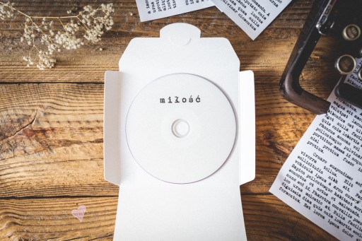 Etui opakowanie pudełko na płytę CD lub DVD z matowym, czarnym napisem "miłość"