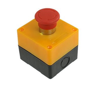 Przycisk bezpieczeństwa `grzybek` - typ przycisku: NC - wyprowadzenia: do przykręcenia przewodów - ilość wyprowadzeń: 4 - Prąd / napięcie: 10A/660V - kolor klawisza: czerwony z białymi strzałkami - kolor obudowy: żółto/czarna - średnica przycisku: 40mm - sposób montażu: natynkowy - wymiary obudowy: 72x78mm - typ obudowy: hermetyczna