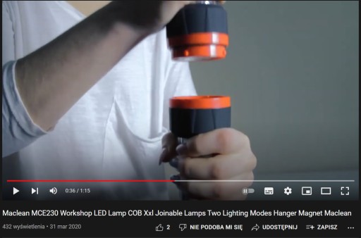 LAMPA LED COB WARSZTATOWA LAMPKA LATARKA POD MASKĘ 2000mAh MACLEAN MCE230