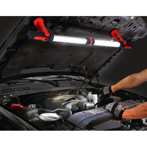 Lampy można połączyć ze sobą za pomocą wbudowanych magnesów, dzięki czemu otrzymujemy jedną dużą lampę warsztatową (102 cm) o bardzo jasnym strumieniu świetlnym 1200 lumenów!