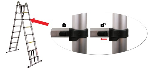 Posiada funkcję blokady nierozłożonych szczebli, co umożliwia ustawienie i bezpieczne korzystanie z drabiny np. na schodach.