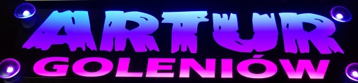 Na tej aukcji kupujesz tablice z jednym lub dwoma napisami i jedną Grafiką lub jednym Logo o wielkości 50cm x 12cm mono kolor. Czyli litery i grafika są białe. Można dodać kolorowe podświetlenie wzór "Artur Goleniów" Gdy nie świeci litery są białe. Zamiast białego można zastosować np. kolor żółty, czerwony, niebieski, zielony.