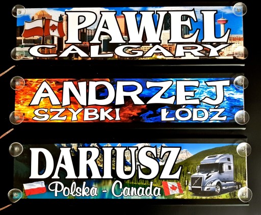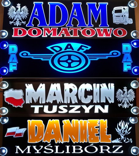 Podświetlane diodami LED, tablice imienne dla kierowców.