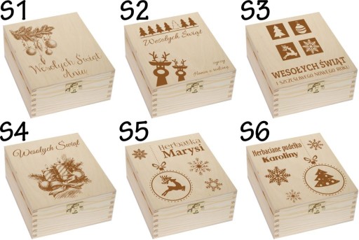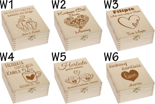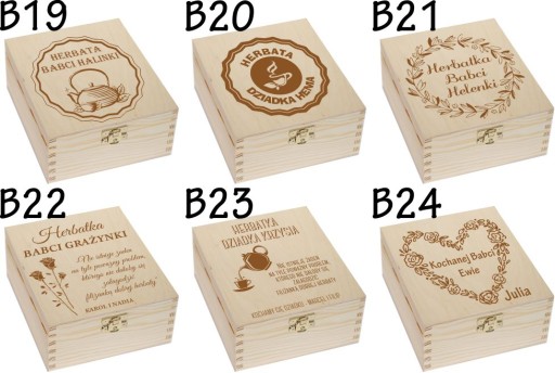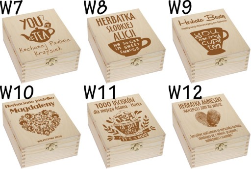 DREWNIANA SKRZYNKA PUDEŁKO NA HERBATĘ Z GRAWEREM, HERBACIARKA
