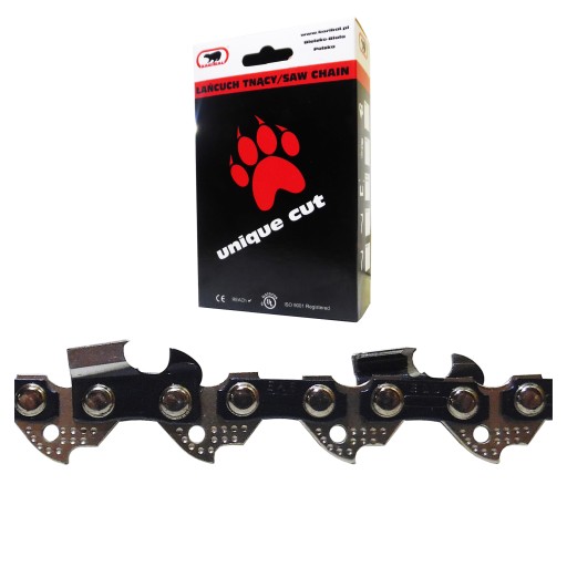 Profesjonalny łańcuch o wzmocnionym, wydłużonym oraz profesjonalnym zębie tnącym [ o 33% od standardu ] posiadający wiele nowoczesnych rozwiązań technologicznych ( stal karbonowa, system przeciw-odbiciowy, system Dual-oil-system, ograniczenie wibracji, kształt zęba przeznaczony do profesjonalnej wycinki ).