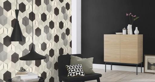 - nowoczesna tapeta z efektem 3D, uzyskanemu dzięki laserowemu cieniowaniu, o matowej, lekko chropowatej fakturze,