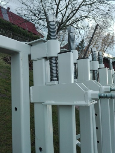 Sprzedam prasę stolarską składającą się z 5 ścisków pionowych ,szerokość klejenia czyli maksymalny rozstaw ścisku 130 cm ,maksymalna wysokość klejenia 9 cm ,wymiary stołu 150 cm x 200 cm ,rozstaw otworów na ścisku co 10 cm ,prasa zbudowana jest z profila 60x40x4 ,zastosowane są śruby trapezowe o średnicy 32 mm ,dodatkowo śruby mają zamontowane łożyska oporowe ,możliwość wykonania prasy o innych wymiarach ,czas oczekiwania od 2 do 4 tygodni.