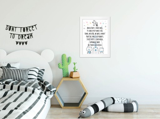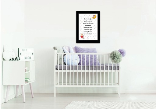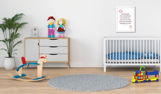 Nasz obrazek świetnie nadaje się na prezent z okazji Chrztu czy pierwszych odwiedzin, a dzięki swej delikatności przeplatającej się z nowoczesnością stanie się pięknym elementem dekoracyjnym pokoju dziecięcego.
