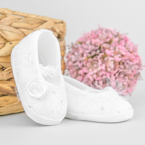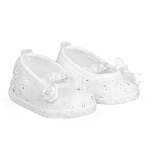 Białe, koronkowe buciki do chrztu dla dziewczynki