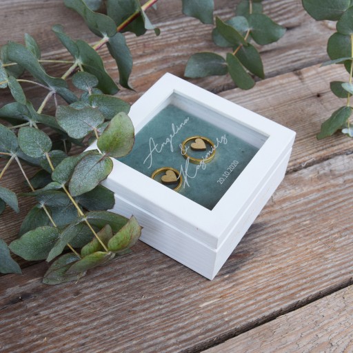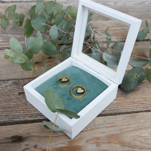 PIĘKNE I DELIKATNE PUDEŁKO NA OBRĄCZKI W KOLORACH EUKALIPTUSA